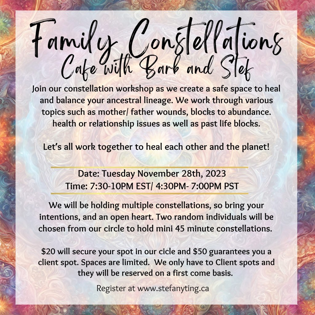 Family Constellations Cafe Client SpotGuaranteed client spot for 45 minute constellation 🙂$50.00 Circle Spot$20.00